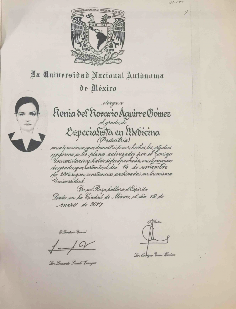 Llevé a cabo mis estudios como Médico Cirujano en la Universidad Autónoma de Nayarit. Posteriormente completé mi formación como Médico Pediatra en el Centro Médico Nacional la Raza, en la ciudad de México, avalada por la UNAM.